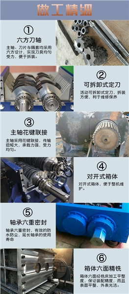 5、撕碎机设计结构先进、外型美观、操作简便、运转稳定、节能、*率等优点。