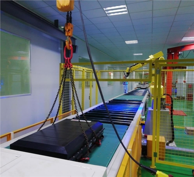 1. 吊装:待拆解模组吊到模组拆解倍速链线上;